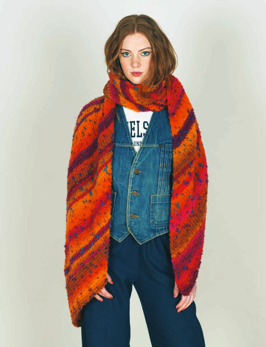 Marilyn Knit Hat and Scarf with Louisa Harding Pouffe digital knitting pattern download. The new Pouffe yarn by Louisa Harding adds a fun, unique texture to this super bulky knitting project. Super warm and super soft. Easy rating.